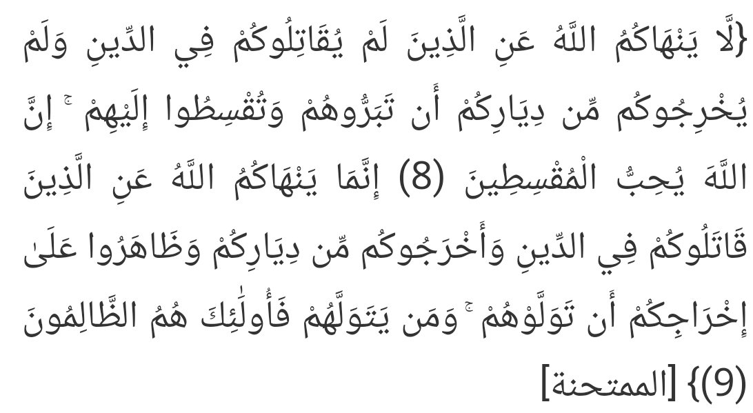 Quran Surah Al Mumtahanah 8 Qs 60 8 In Arabic And English Translation Alquran English