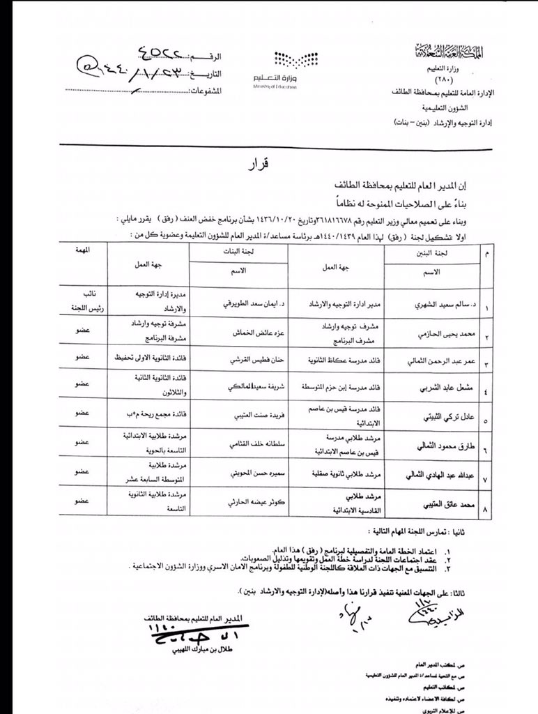 عبدالله العازمي On Twitter صدر قرار المدير العام للتعليم طلال اللهيبي بتشكيل لجنة رفق بالإدارة العامة للتعليم بمحافظة الطائف لهذا العام ١٤٣٩ ١٤٤٠ Https T Co 2k3elj0ofj