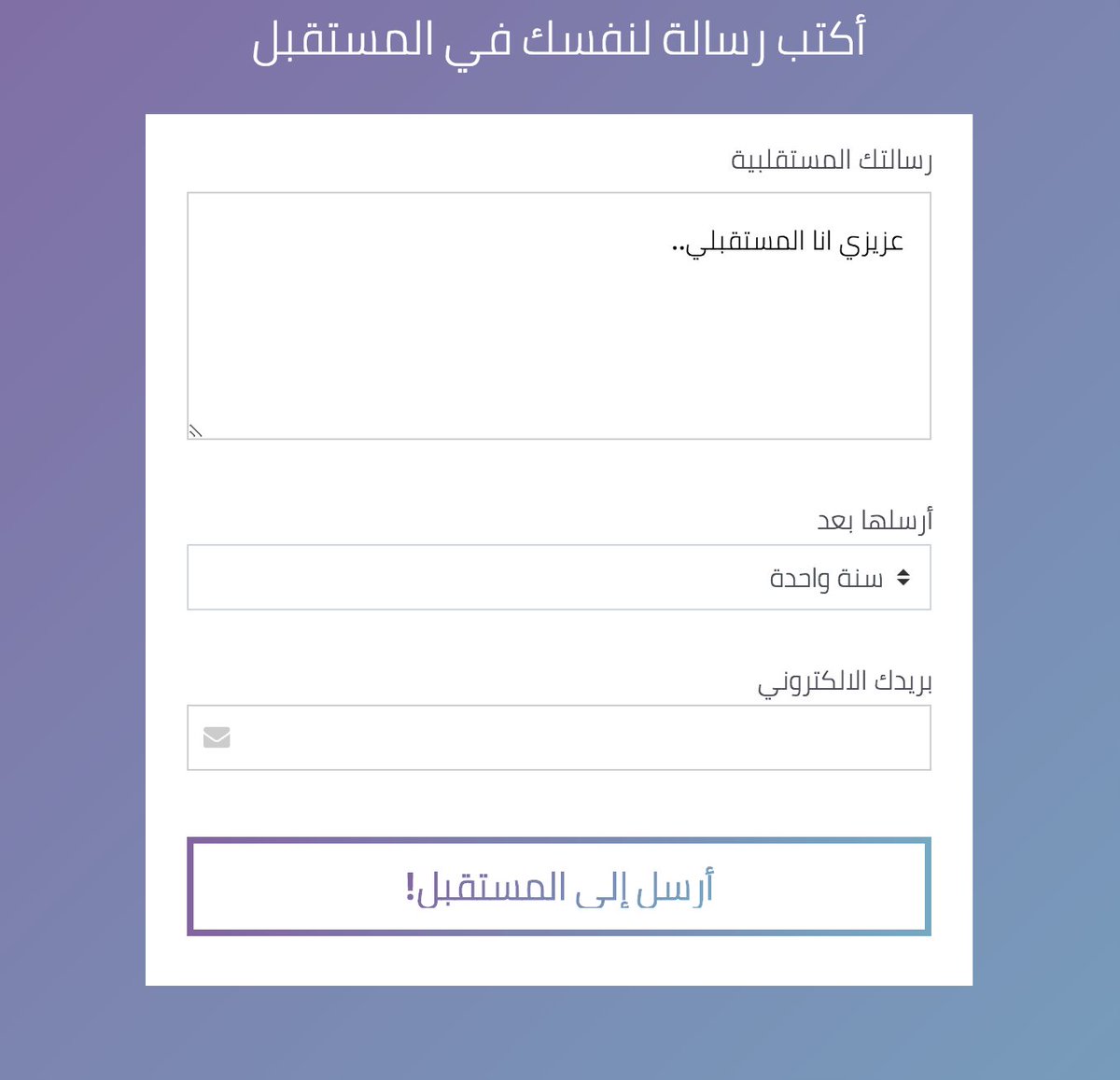 عبدالعزيز الحمادي على تويتر موقع عربي يتيح لك إرسال رسالة إلى نفسك تصلك في المستقبل سواء بعد سنة أو سنتين أو حتى بعد خمس سنوات مفيدة إذا كنت تريد كتابة طموحاتك أهدافك