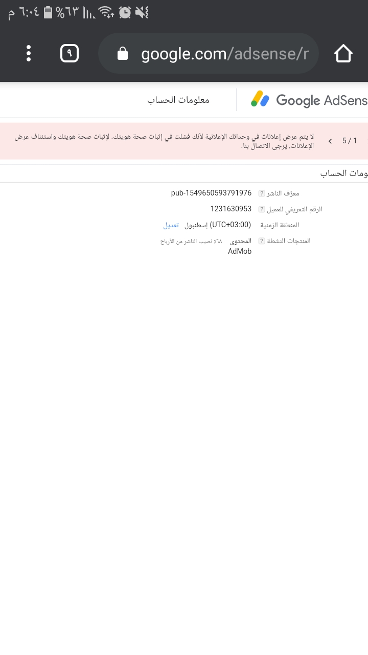لقد أرسلت بطاقة الهوية ولم يتم تفعيل حسابي بعد Pub 1061006956743725 Adsense Community